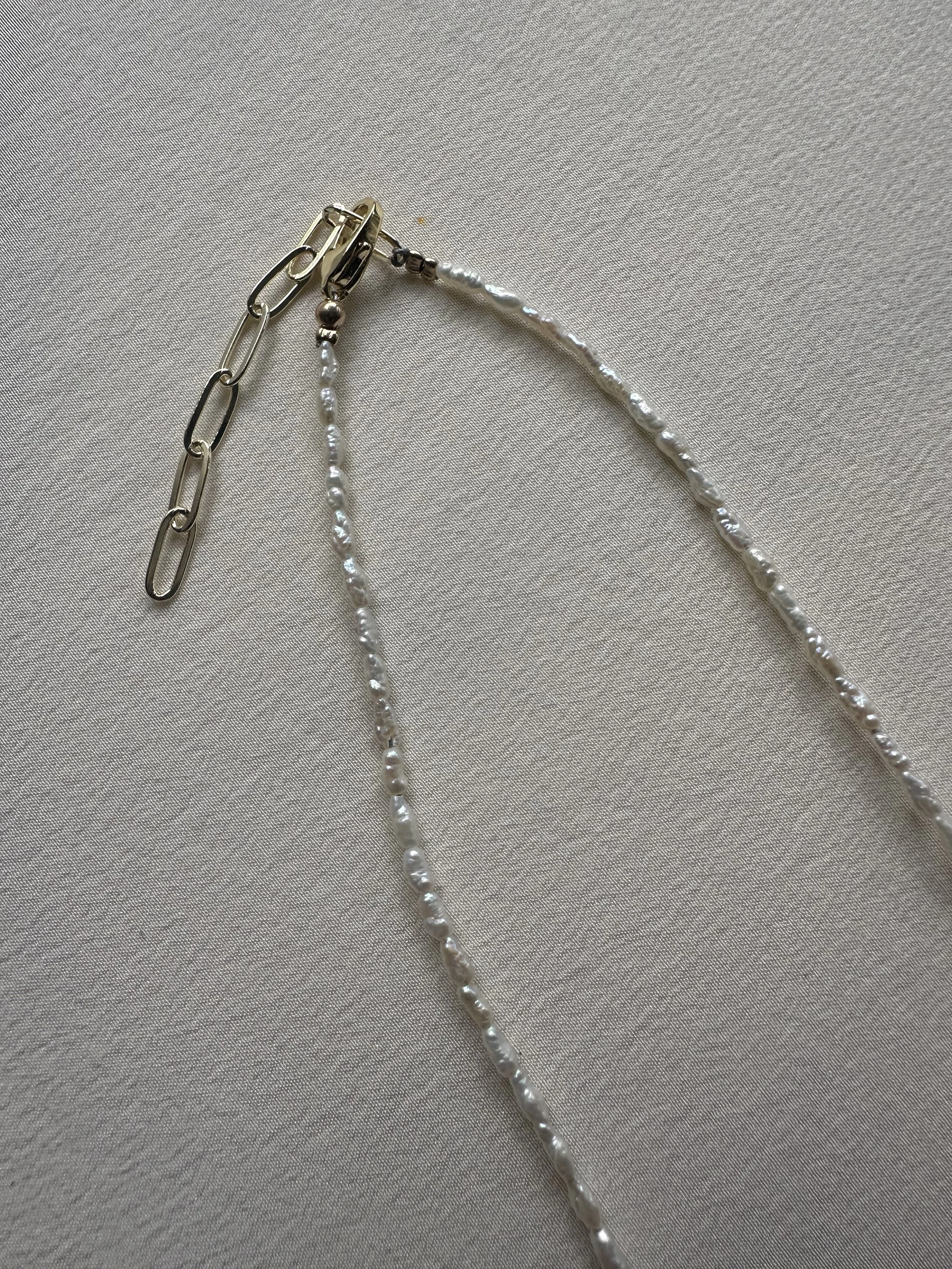 Happy to string on black waxed cord for you (no charge) / I have lots of sterling silver chains avaialble / I can make a custom pearl/other gemstone necklace to wear it with - send me a dm on instagram to discuss