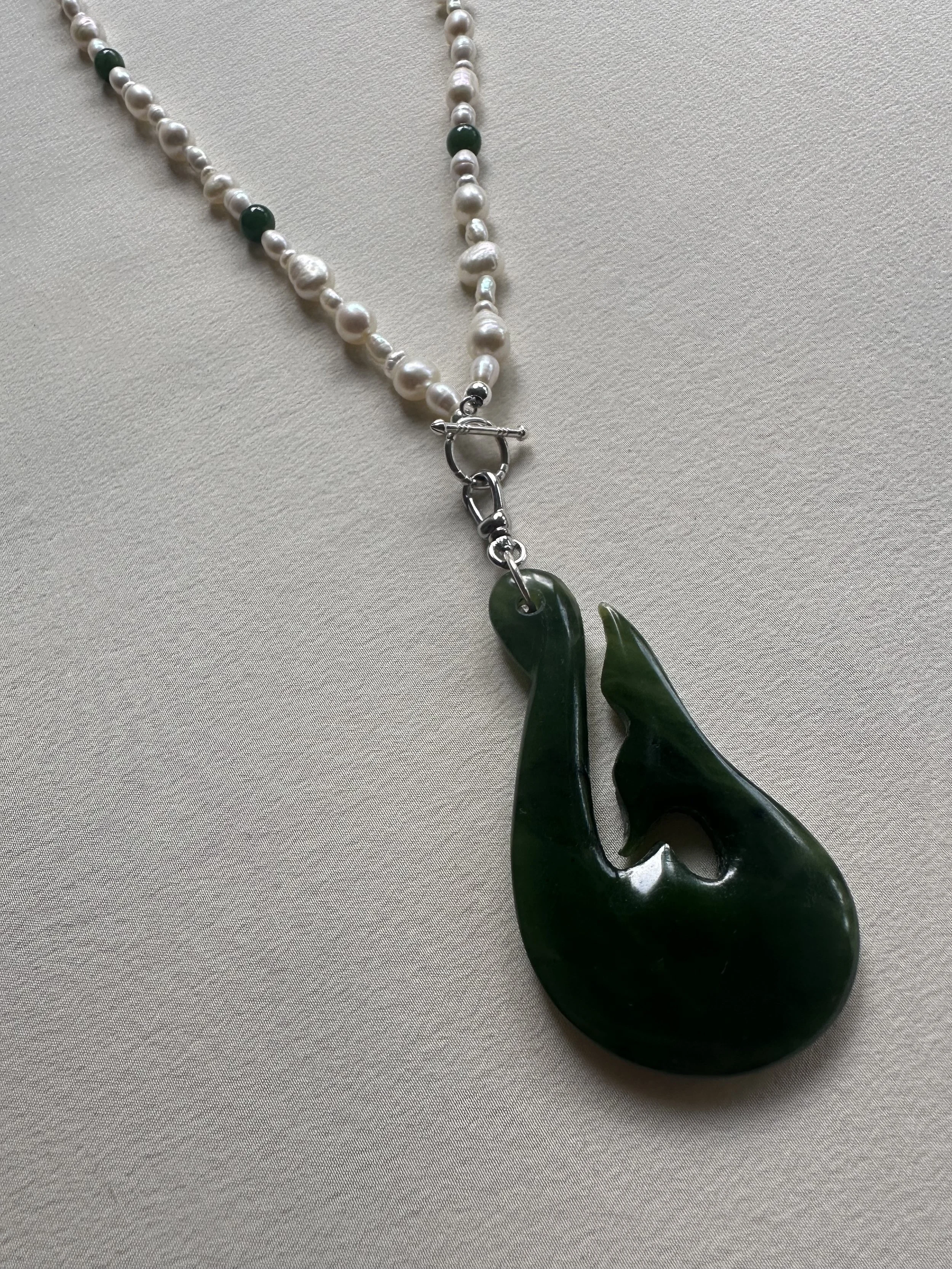 Aotearoa greenstone Muri Paraoa (whale tail) pendant (top left hand side in the picture) purchased secondhand but like new, 3.7 × 3.4cms