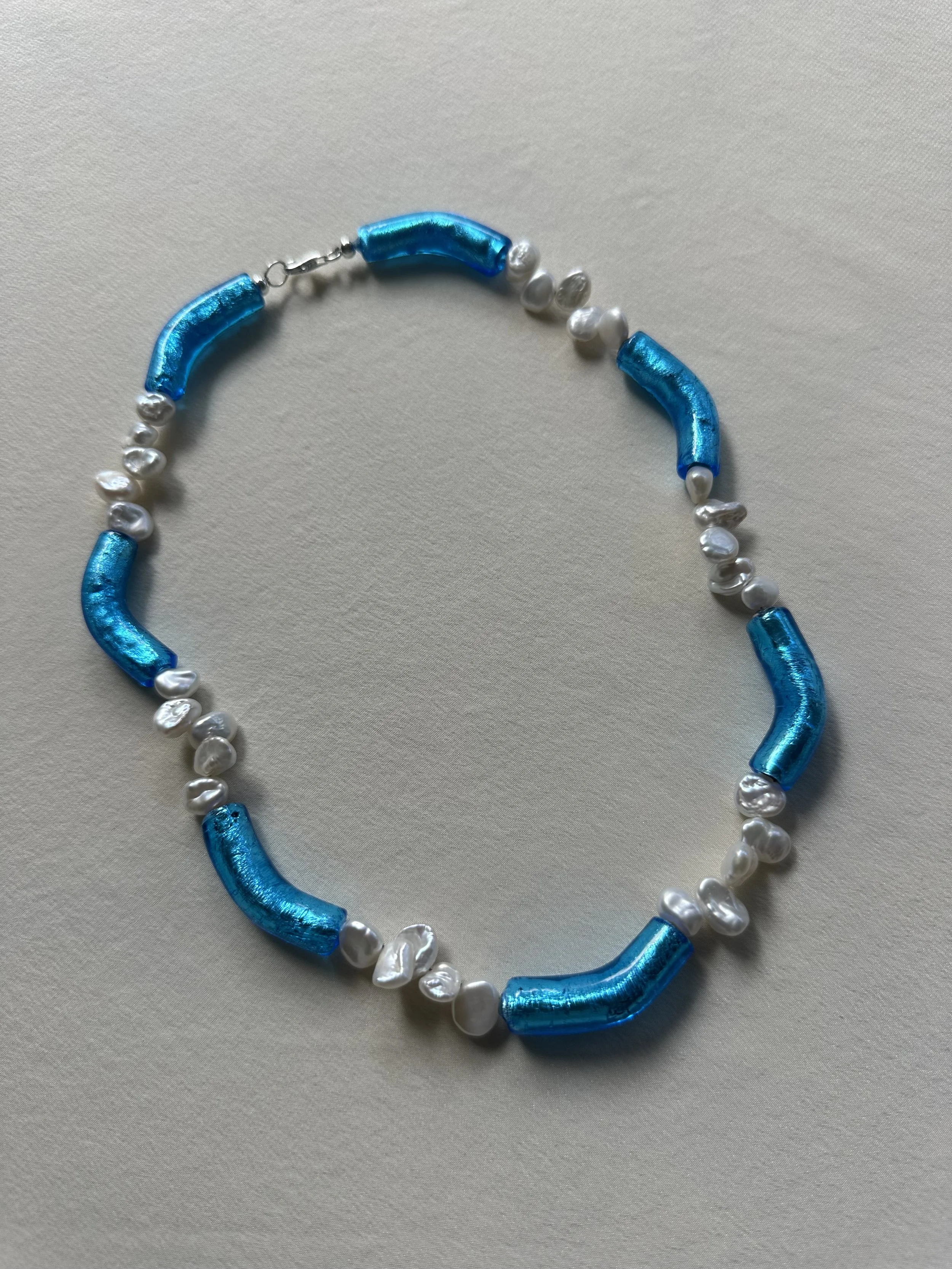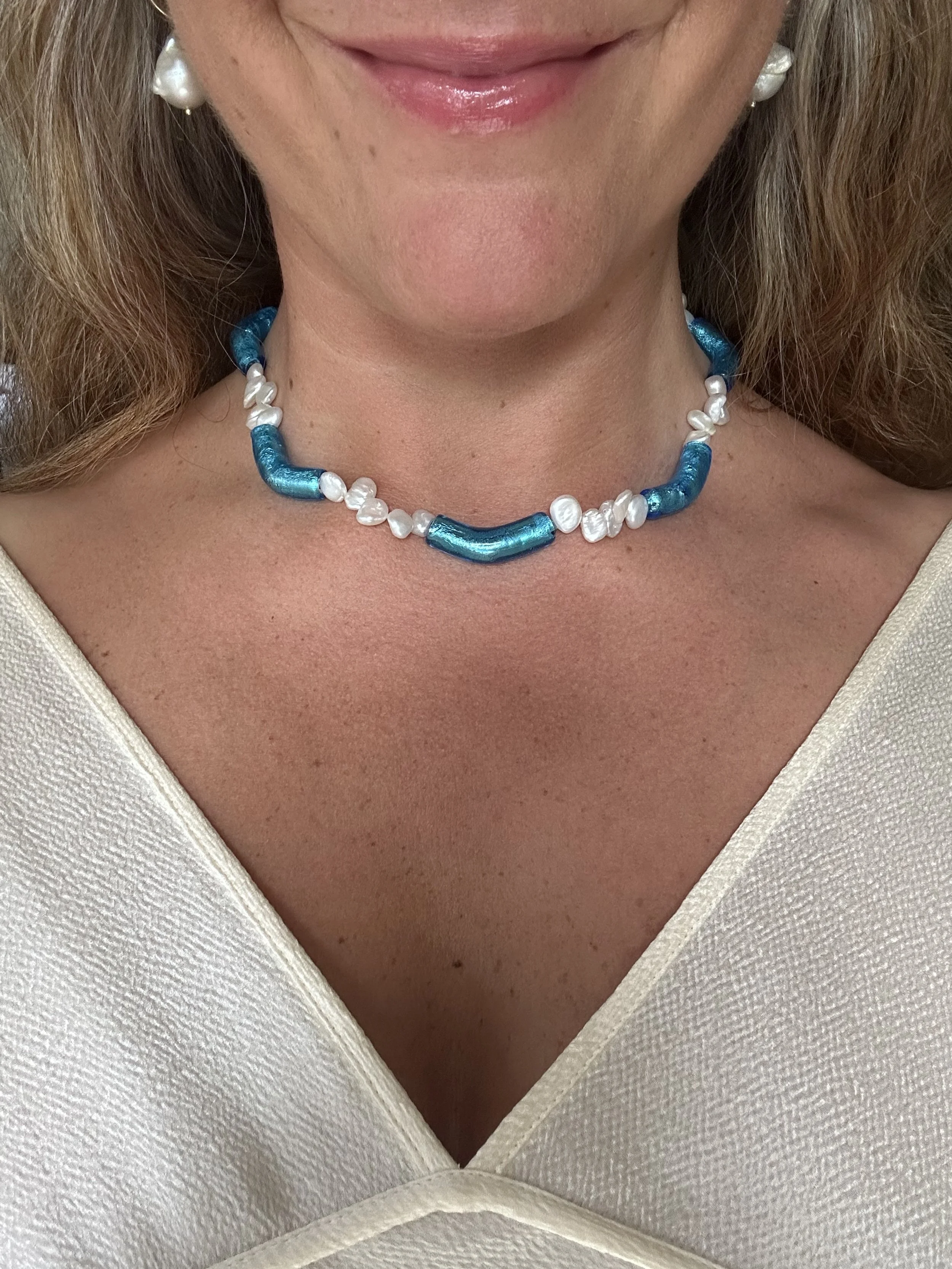 Aubergine silver leaf glass & Tahitian MOP heart pendant