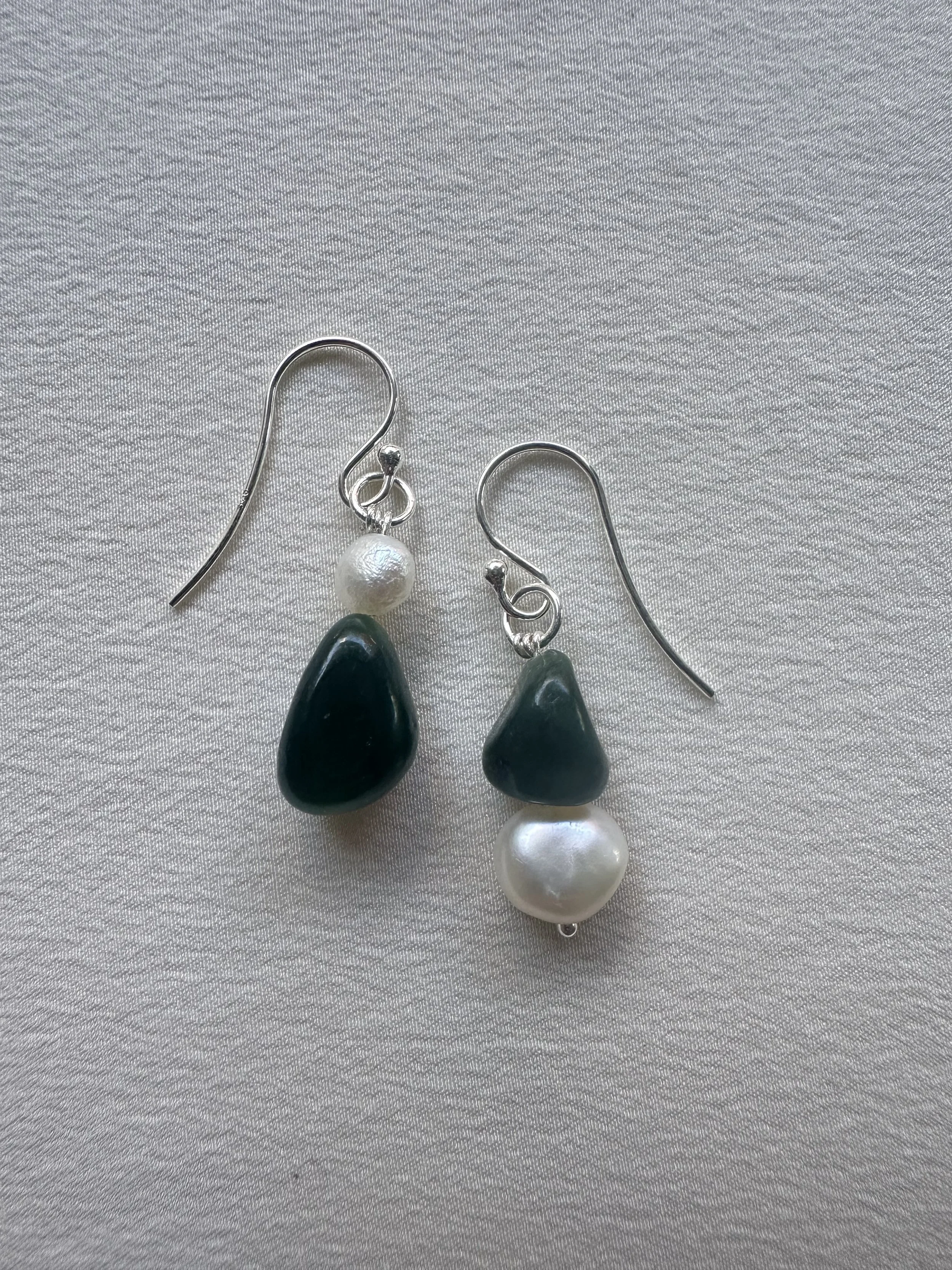 Greenstone & pearl earrings with sterling silver hooks