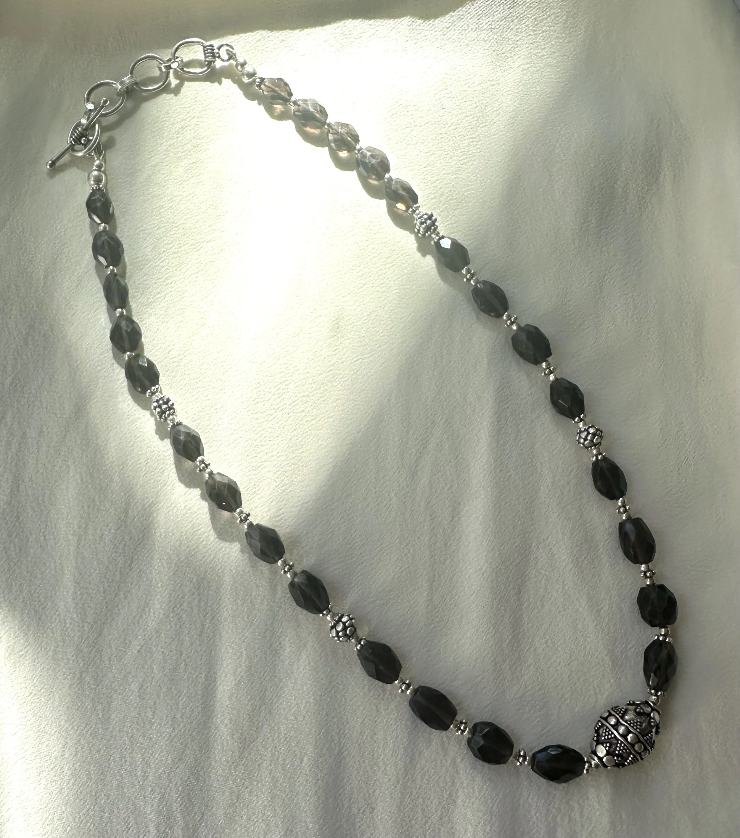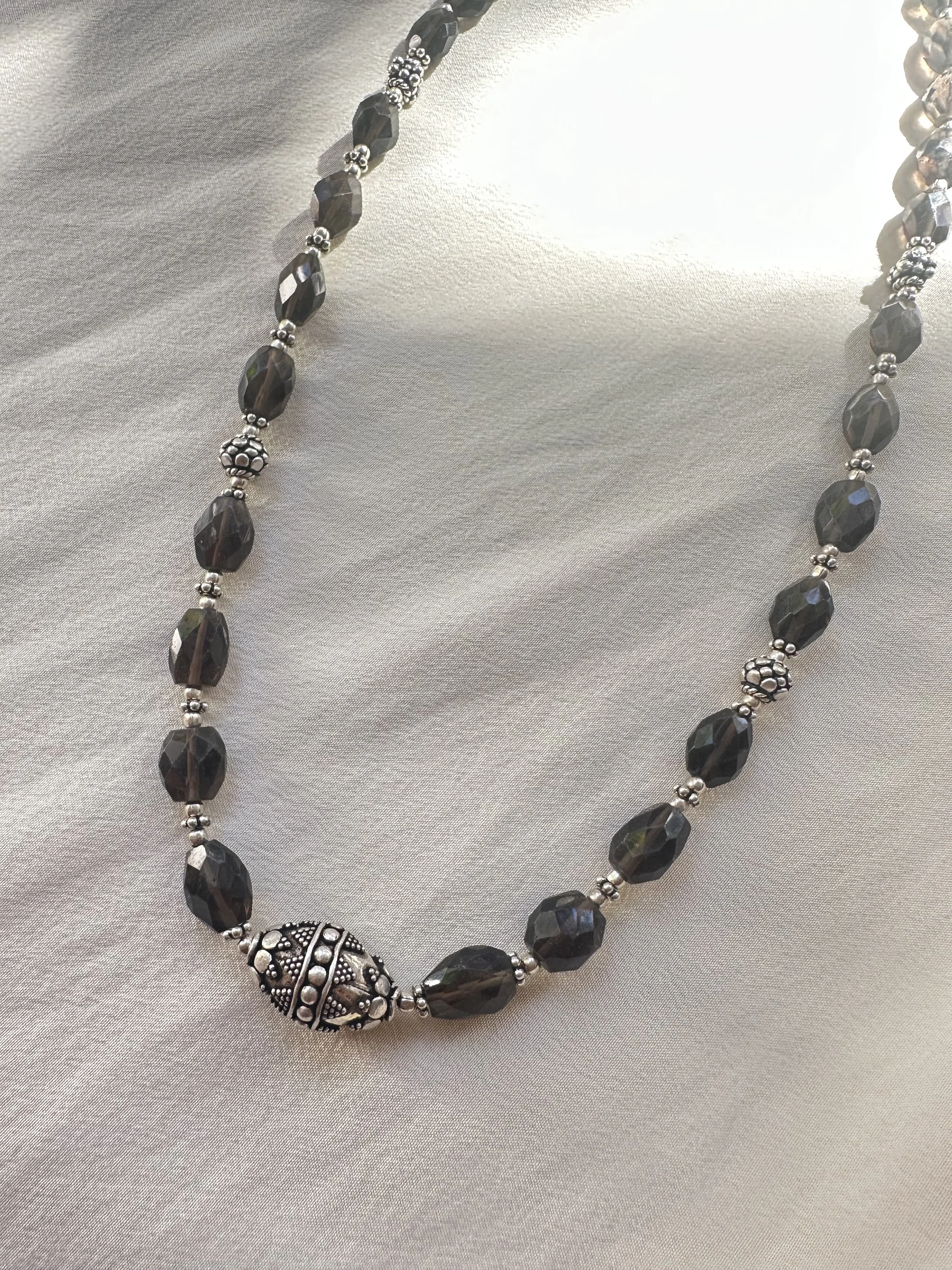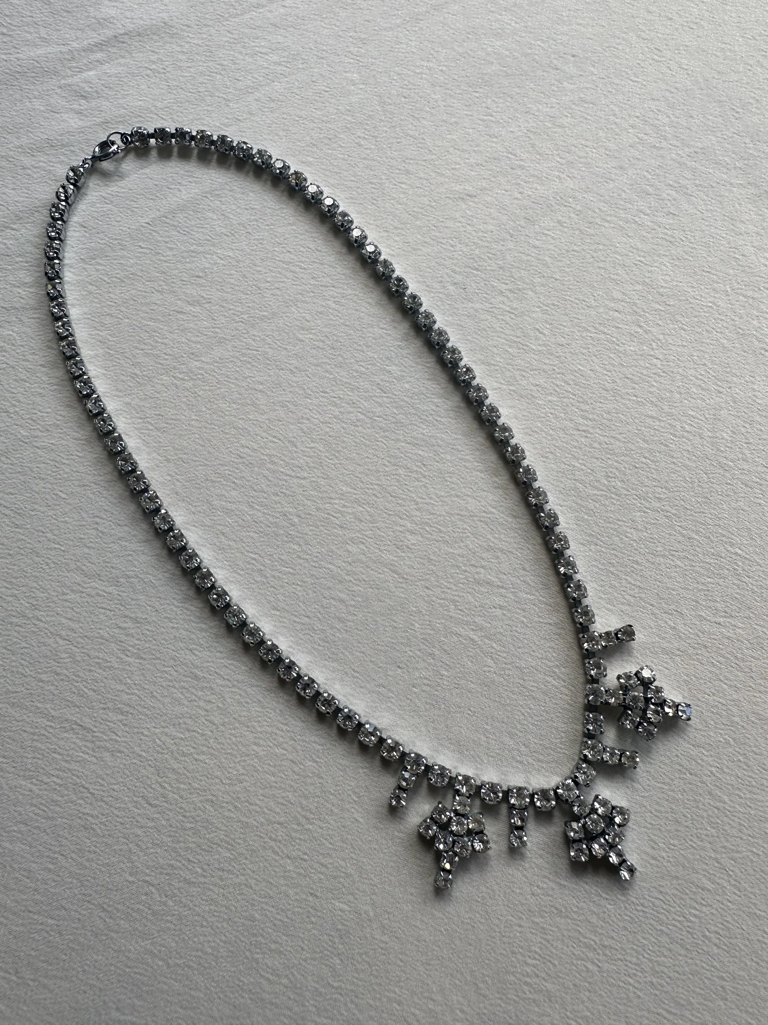 High grade vintage hand-knotted near round freshwater pearl short necklace, sterling silver flower box clasp, excellent condition, 46.5cms