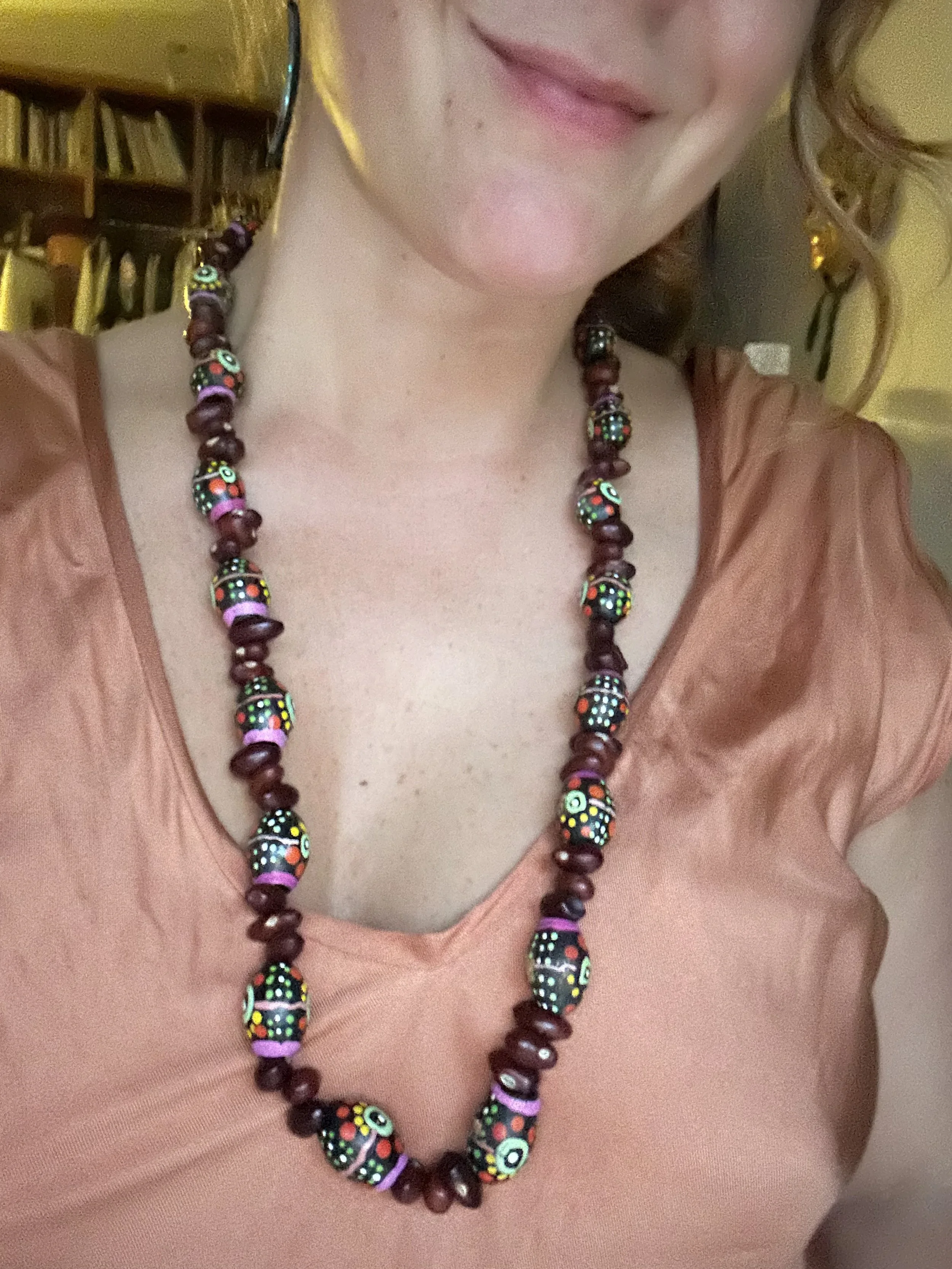 Vintage peacock black baroque hand-knotted pearls with a gold filled clasp, 46cms